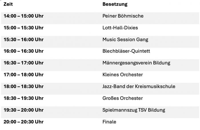 Freut euch auf ein abwechslungsreiches Programm mit musikalischen Highlights: Von traditioneller Blasmusik und Spielmannszugklängen über swingende Jazz- und Blues-Nummern bis hin zu mitreißendem Rock und Pop – für jeden Musikliebhaber ist etwas dabei! Bringt eure Freunde, eure Picknickdecke und gute Laune mit, um den Tag bei bester Musik, erfrischenden Getränken und leckeren Grill-Spezialitäten zu genießen. Der Eintritt ist natürlich frei!